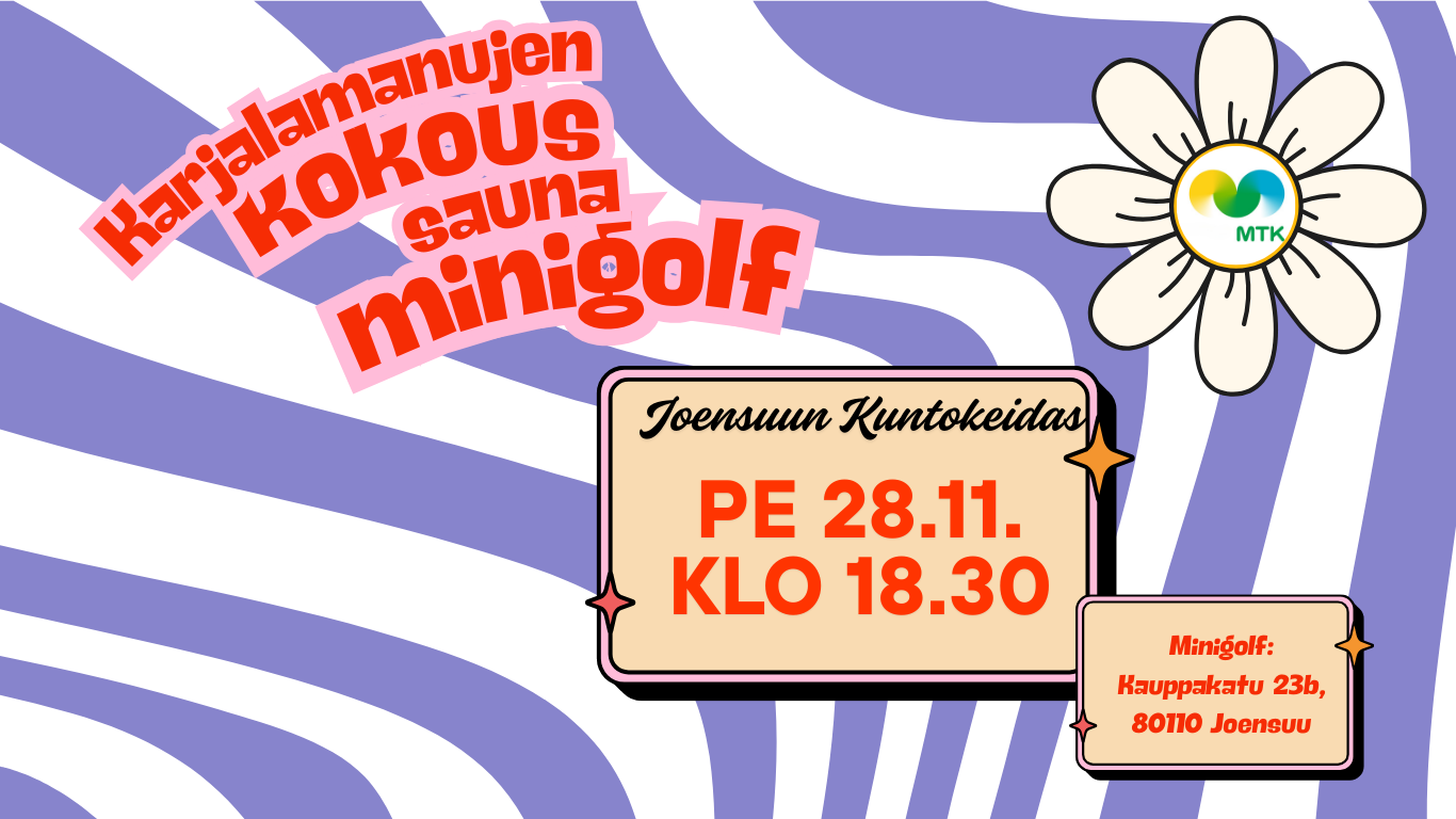 Paikka: Kokous ja sauna: Joensuun Kuntokeidas Linnunlahdentie 10, 80110 Joensuu. Hohtominigolf Joensuu Kauppakatu 23b, 80110 Joensuu.